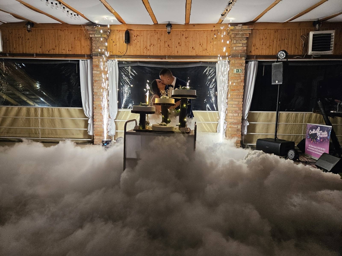 Lenyűgöző látványelemekkel, például szárazjeges füsttel, hidegszikra-effektekkel, gépi buborék fújással vagy éppen a nevetek kiírására is alkalmas lézerrel teszem még különlegesebbé a Nagy Napotokat. Emellett a szertartás hangosítását, valamint a vendég fellépők technikai hátterét is biztosítom.