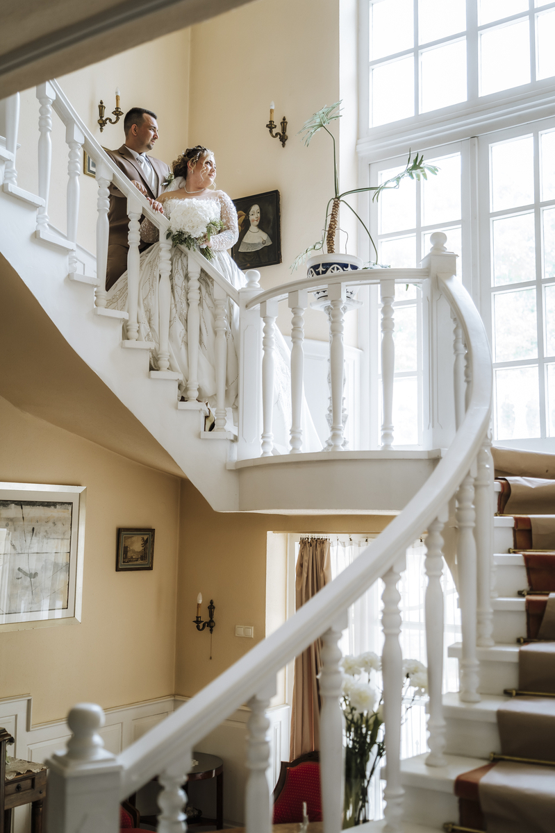 A kastély további előkelő belső terei – a díszes lépcsőház és a romantikus erkélyek – számtalan inspirációt nyújtanak a kreatív esküvői fotózáshoz. Különleges éke az épületnek az íves főlépcső fehér korlátjával, amely méltó hátteret ad a nagy nap legszebb pillanatainak.