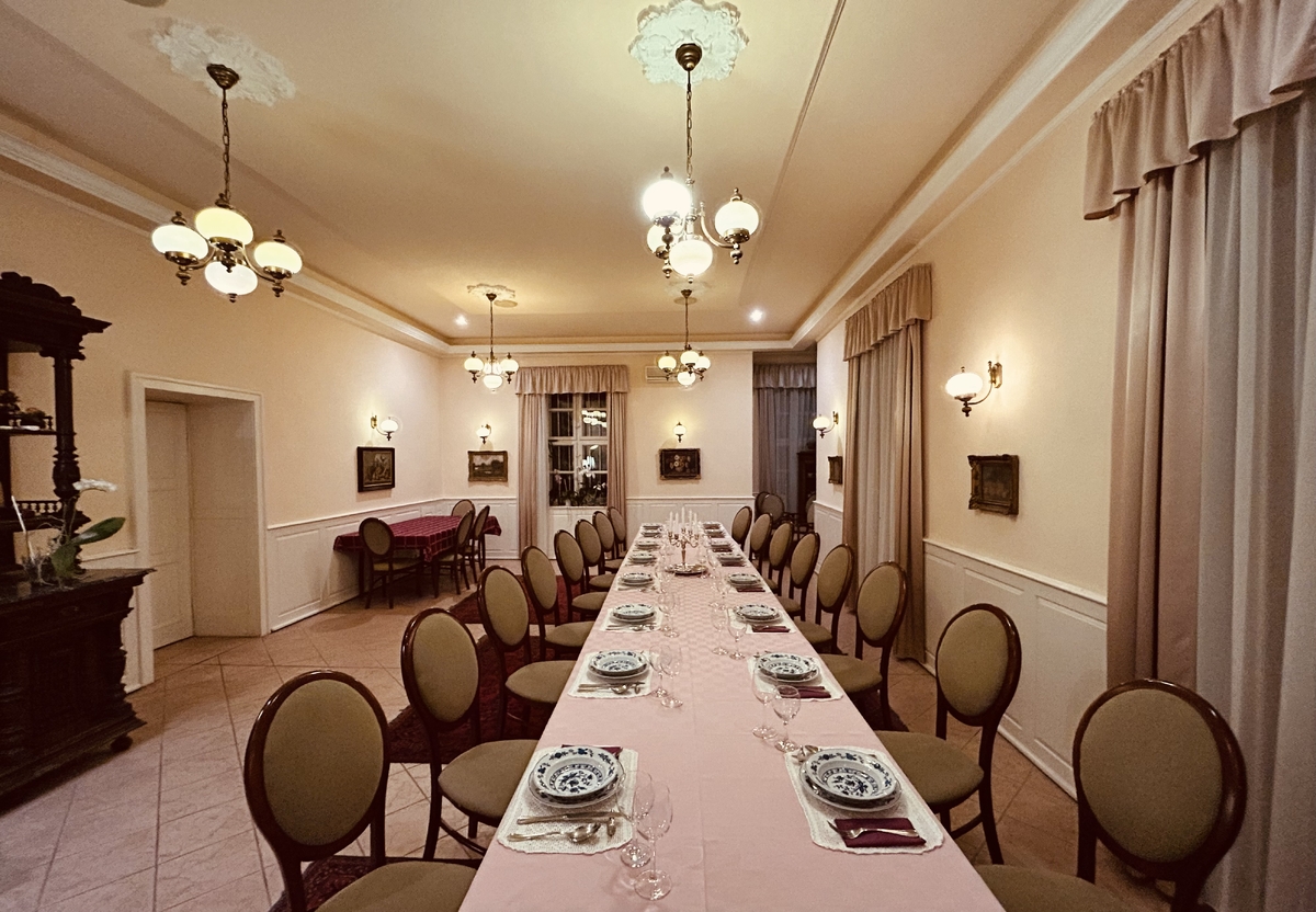A kastély hangulatos belső terei – az ebédlő, a konferenciaterem és a kis szalon – együtt ideális helyszínt kínálnak elegáns kisebb esküvők számára.