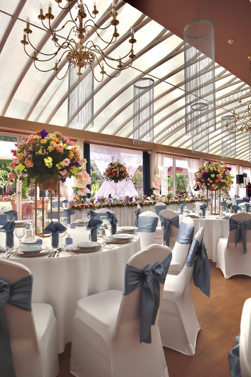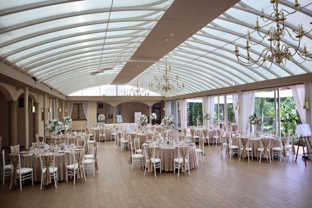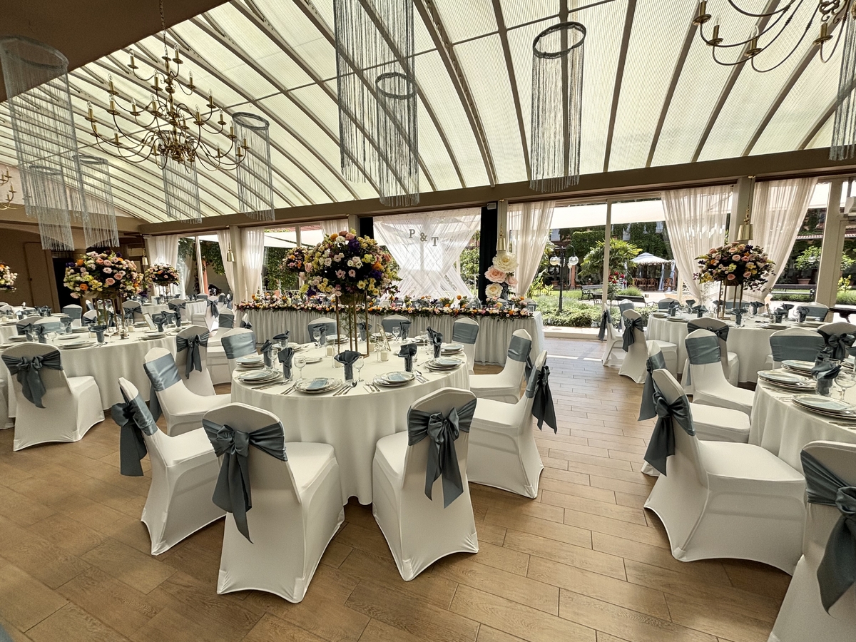 Légkondícionált üvegtermünk, mely igazán különlegessé teszi majd esküvőtöket. A közvetlen kertkapcsolattal rendelkező terem körasztalokkal berendezve elegáns hangulatot kölcsönöz, valamint az üvegfalon túl lévő kivilágított wellness részlegünk (melyet az esküvő ideje alatt természetesen lezárunk) dekorációs elemként teheti még egyedibbé az esküvői vacsorátokat.