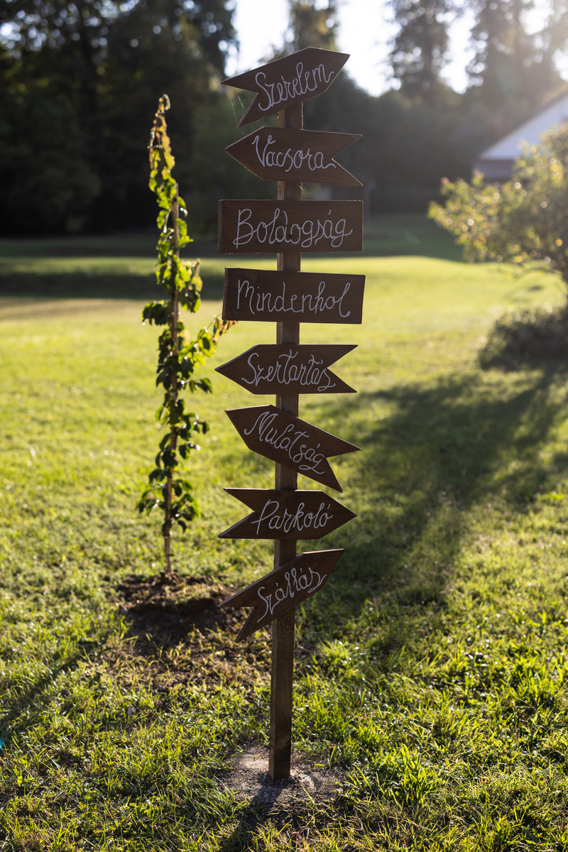 Az esküvői szertartás tökéletes helyszíne lehet a kerti tó felett benyúló stég, valamelyik termetes fa árnyéka, de akár a hatalmas füves terület is.