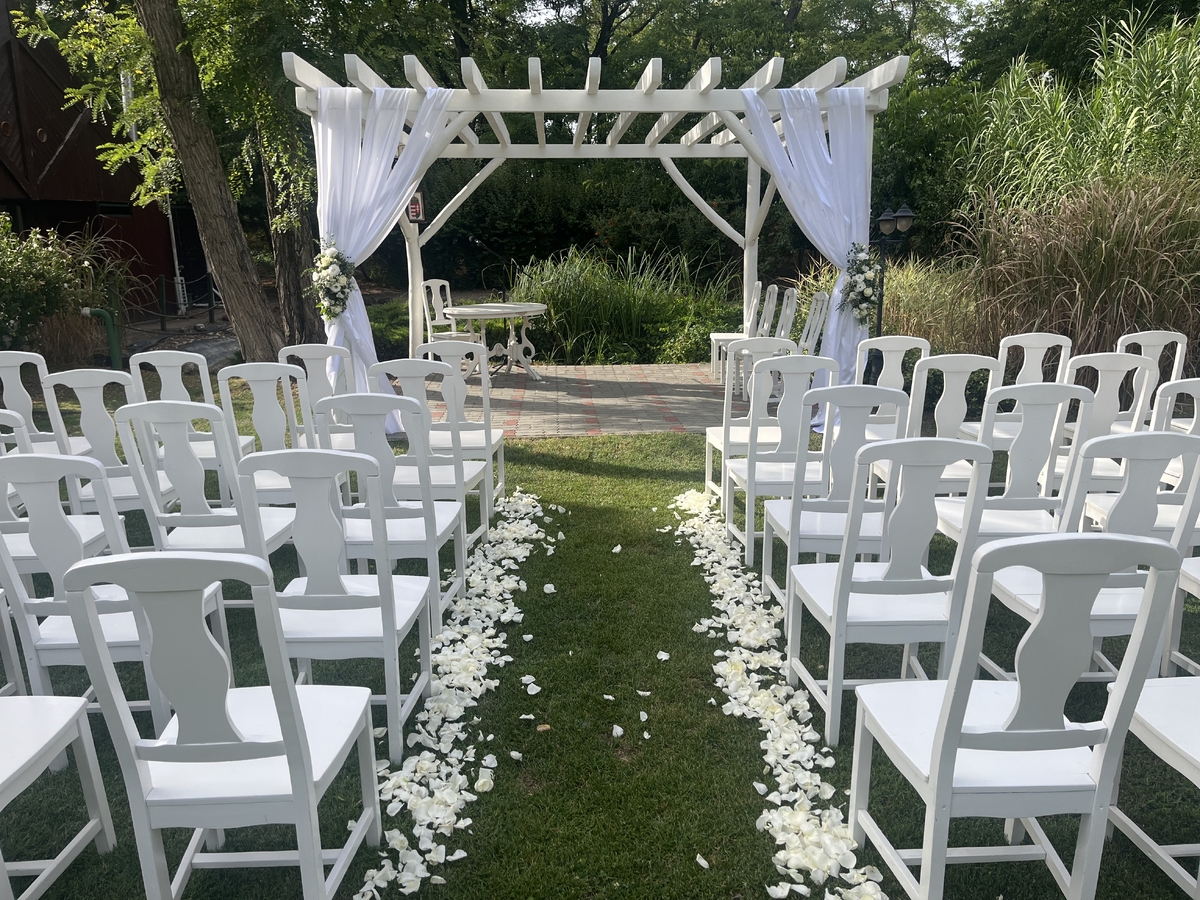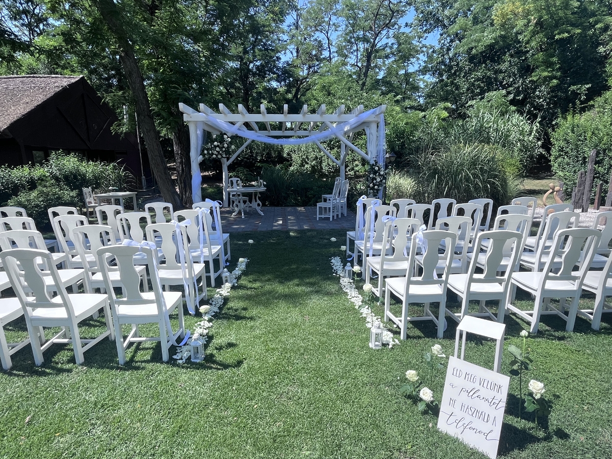 A szertartás is megrendezésre kerülhet parkunkban, egy kis tavacska partján, lombos fák árnyékában. Hivatalos szertartás megtartására is van lehetőség, előzetesen egyeztetve a pilisi anyakönyvvezetőkkel. Rossz idő esetén a szertartás lebonyolítására kisebb rendezvénytermünk rendelkezésre áll.