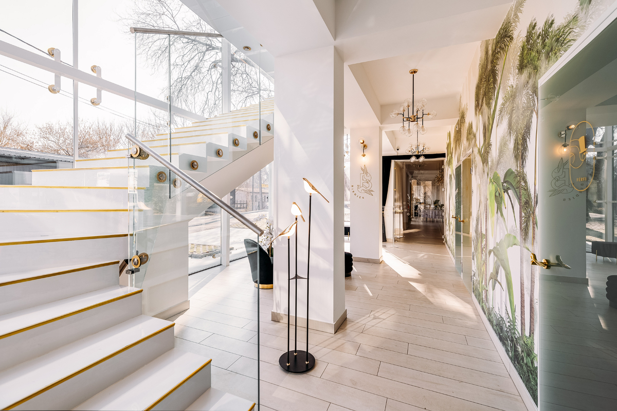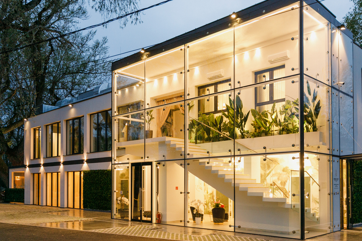 A letisztult, nyitható üvegfalakkal kialakított négyévszakos tér világos, rugalmasan alakítható, így egyszerre biztosít eleganciát és természetközeli atmoszférát.