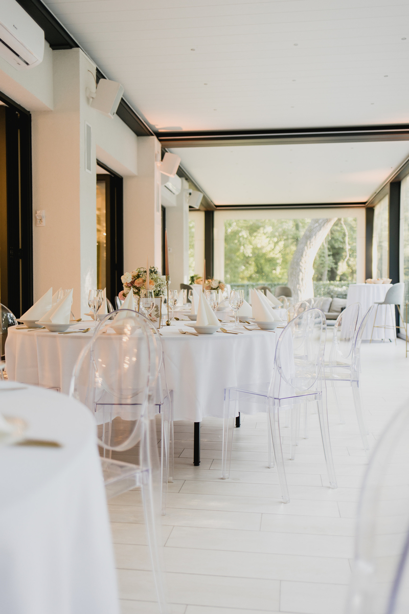 A helyszín több opciót is kínál szertartásra, de párjaink kedvence a Duna Panoráma Terasz, ami közvetlen a vízpartnál terül el, így csodás hátteret biztosít az Igen-ek kimondásához. Ugyanez a rész kis létszámú esküvők vacsoraszínhelye is tud lenni jó idő esetén.