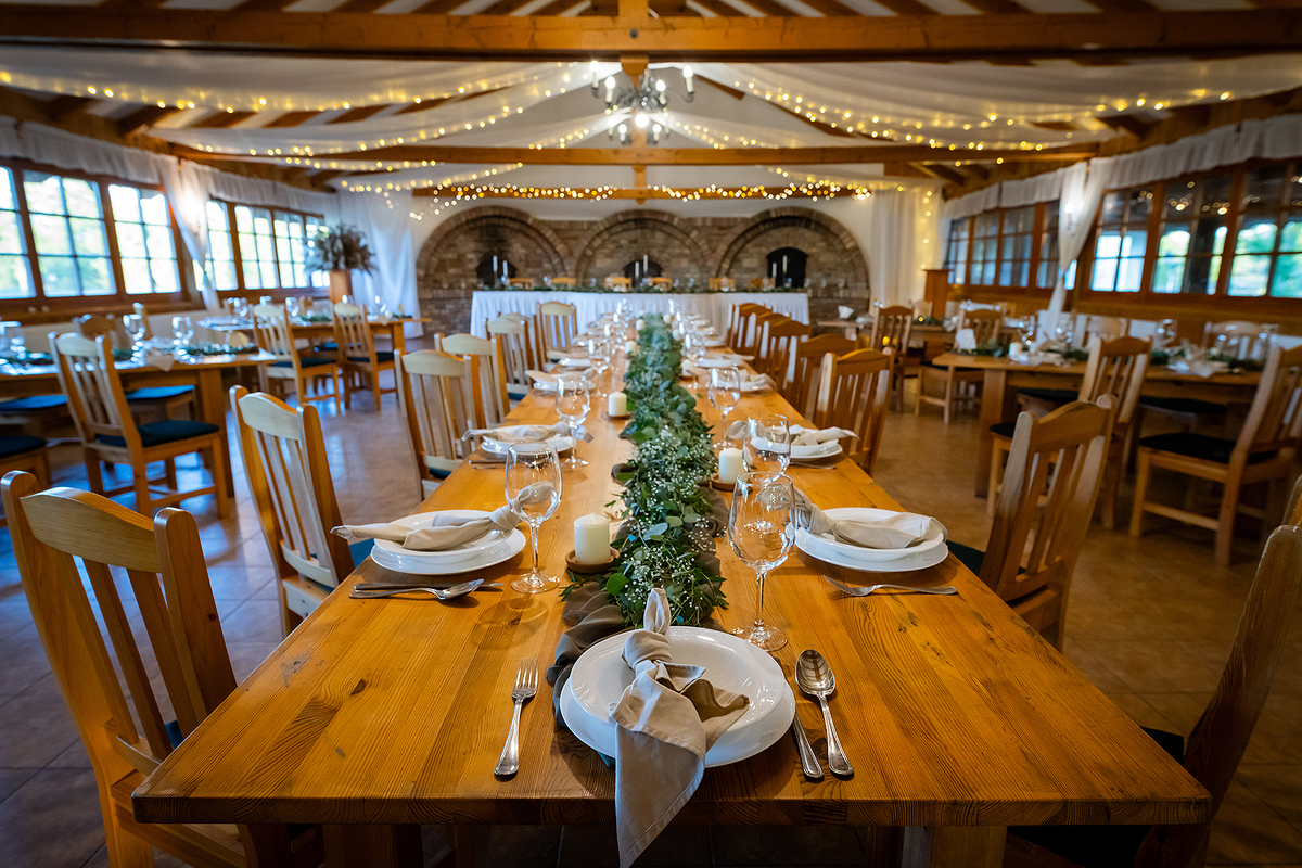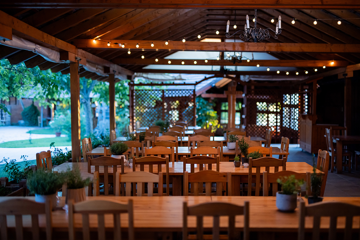 A vacsorához és esti mulatozáshoz tökéletes választás az apró téglával kirakott kemencés, rusztikus hangulatú Csárda, mely 250 főnek kényelmesen biztosít helyet. A csárda elején égősorral díszített terasz nyújt pihenőhelyet az erős napsütés vagy esetleges eső elől védve. A rusztikus légkört igény esetén könnyen elegánssá varázsoljuk hófehér asztalainkkal és hozzájuk választható arany fémvázas vagy átlátszó “ghost” székeinkkel.