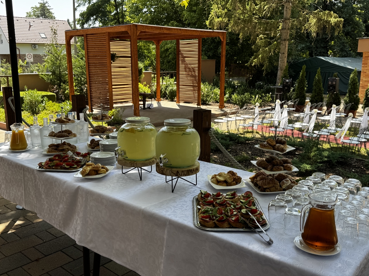 Étterme a Veranda Bistro & More mediterrán hangulatba öltözve várja a jövendőbeli Ifjú Párokat nagy napjuk megszervezésére, bármely igénynek teret adva. Belső kerthelyisége hangulatos zöld övezettel, híddal átívelt romantikus kis tóval, hófehér filagóriával már csak a boldogító igen elhangzását várja. Éttermünk befogadóképessége 120 fő, amely 150 főig kibővíthető, valamint 6 darab külön termünket tudjuk vendégeink szolgálatába állítani. Az elképzelt menüsort egyéni igényre szabva igyekszünk elkészíteni, legyen az házias vagy akár nemzetközi étel, de emellett egyaránt megtalálhatóak a bio és anti allergén menüsorok, hogy a speciális igényeket is kielégíthessük.