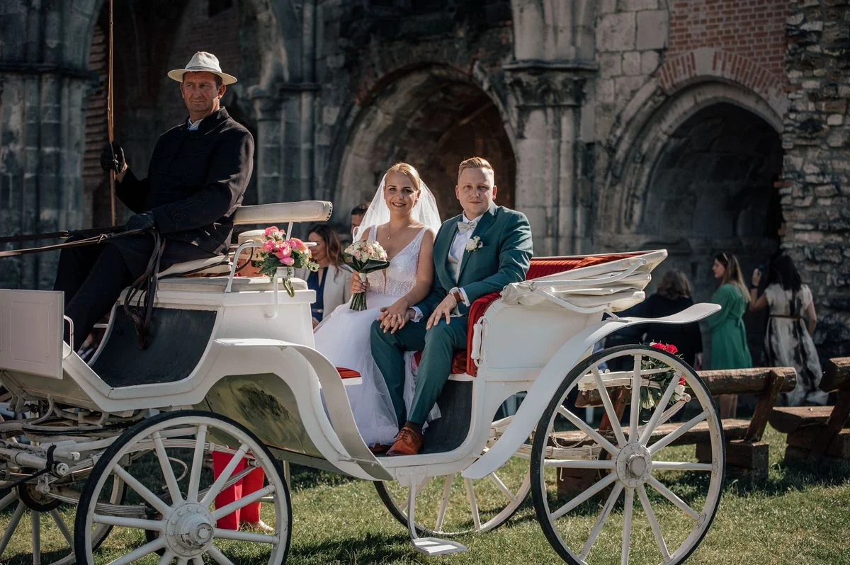 - 2 vagy 4 fogatos hófehér hintó az ifjú párnak
