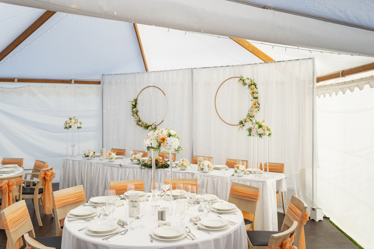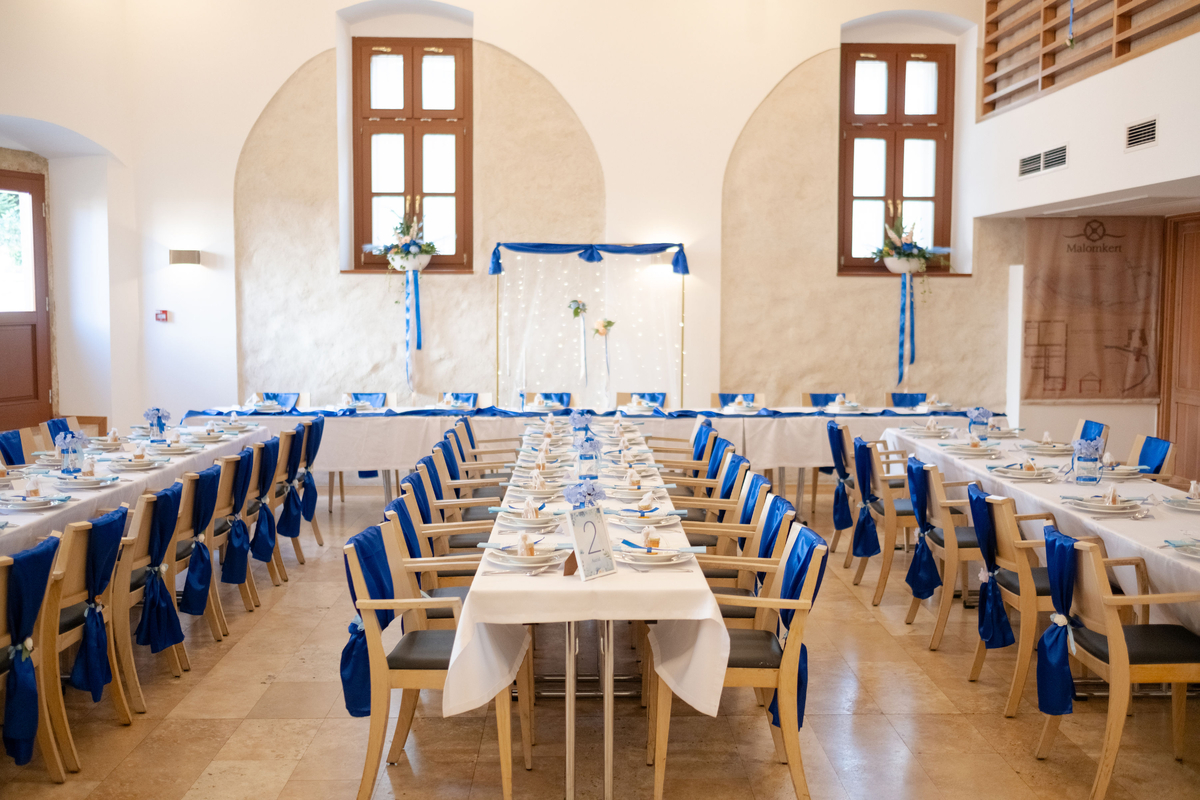 Az esküvő lebonyolítására 2 helyszínen van lehetőség: szabadtéren a Historia Kert Kávéház és Borbárban, ahol sátorbérléssel 150 főt tudunk leültetni, vagy a Hotel Historia Malomkert rendezvénytermében, mely 80 fő befogadására alkalmas körasztalos, táblaasztalos vagy "U" alakos ültetéssel.