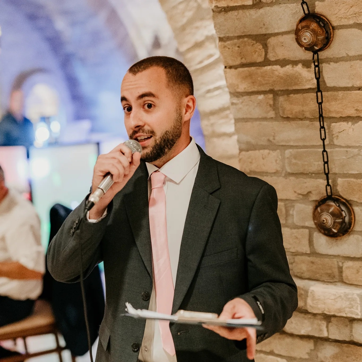Dahud Emil vagyok, képzett ceremóniamester. Ha még nem tudjátok, hogy az esküvőtökön ki fogja az ügyes-bajos dolgokat intézni, amíg ti mulattok, jó helyen jártok. Nyitott vagyok mindenféle kívánságotokra, igyekszem teljesíteni a kéréseket. Könnyen együttműködök a szolgáltató kollégákkal, és a Nagy Nap minden egyes lépéséről tájékoztatom a kedves vendégeket. Nem csak a terhet veszem le a vállatokról, hanem a beszélőkémmel, játékaimmal a meghívottak szórakoztatása sem maradhat el.